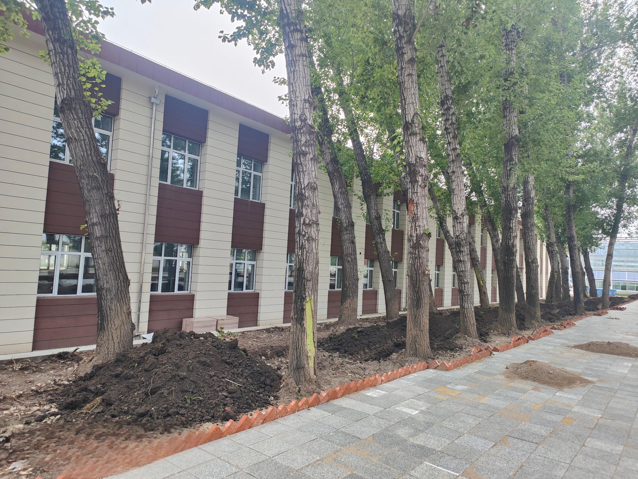 在北区12号公寓周边,2000余平方米裸地被精心回填100余立方米黑土并种植上兰花鼠尾草,片片绿植在此扎根;农机楼院内及周边,二月兰、千屈菜、黑心菊错落有致,勾勒出缤纷的色彩带,绿化面积累计达到5000余平方米;西环路的景观改造逐步展现出自然和谐的生态风貌。这一系列绿化提升不仅改善了校园环境,更以润物无声的方式传递着“环境育人”的力量,让绿色成为校园中最温暖的底色。
